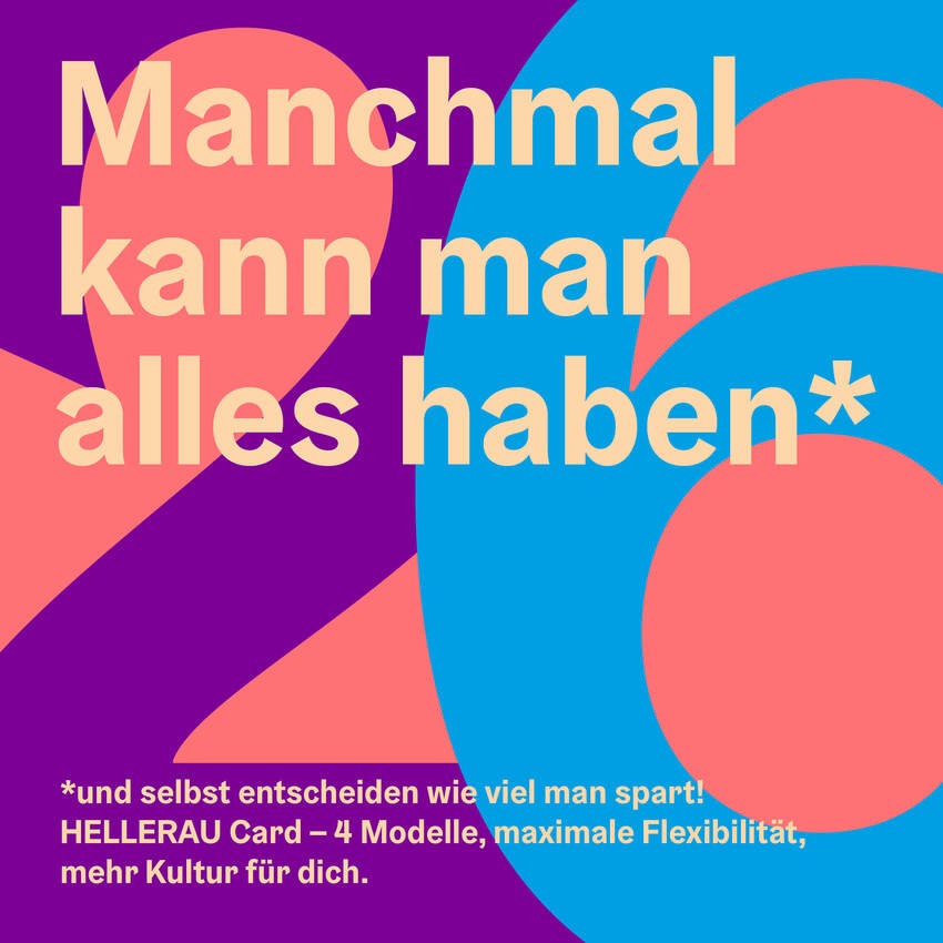 Suchen Sie noch nach einem Geschenk, mit dem Sie garantiert punkten? Die HELLERAU Card sorgt für Kulturfreude unter dem Weihnachtsbaum: Weniger zahlen, mehr erleben, früher dran sein und obendrauf noch exklusive Einblicke bekommen. Perfekt für alle, die Kultur lieber verschenken als irgendwas, das verstaubt. |